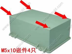 嵌件明细:内部注塑放4个M5x10嵌件, 外部超声波4个M5x10嵌件