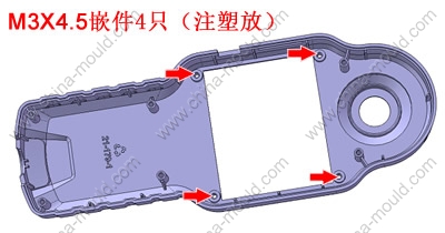 嵌件明细:M3x4.5嵌件4只(注塑放)