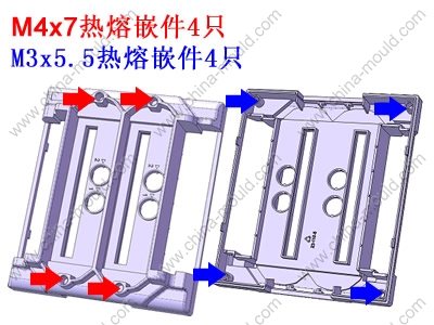 嵌件明细:M4x7热熔嵌件4只,M3x5.5热熔嵌件4只