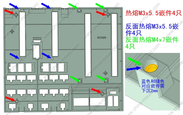 嵌件明细:热熔M3x5.5嵌件8只,热熔M4x7嵌件4只