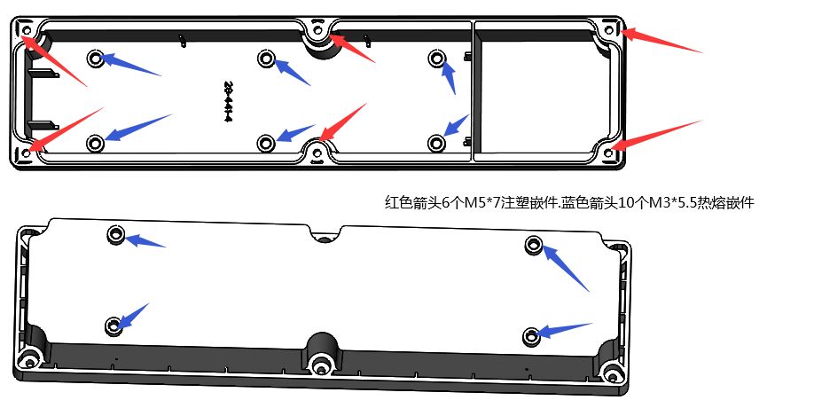 嵌件明细:10个M3*5.5热熔嵌件 6个M5*7注塑嵌件