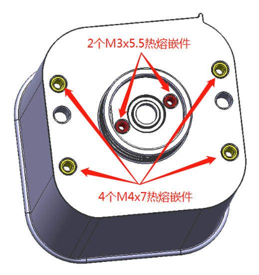 嵌件明细:2个M3x5.5热熔嵌件; 4个M4x7热熔嵌件