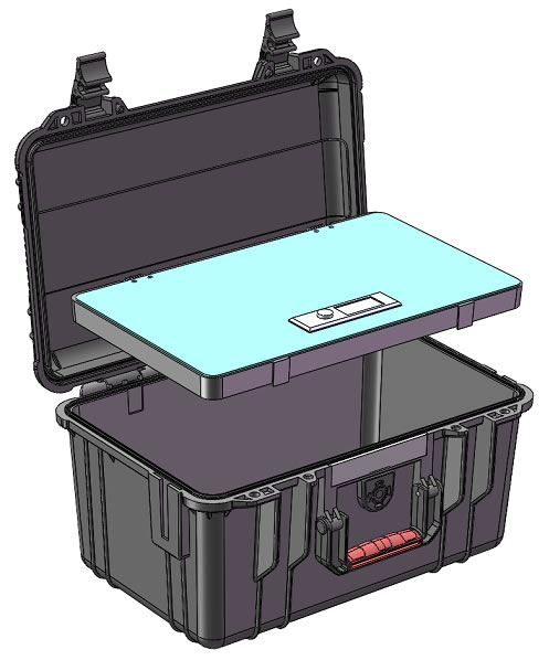 特点:全封闭、防尘、防水、牢固、轻便。箱体内部有海绵填充,可按产品尺寸定制内腔,起到防震作用。另有箱体铝板选配件,可当仪表机箱使用。