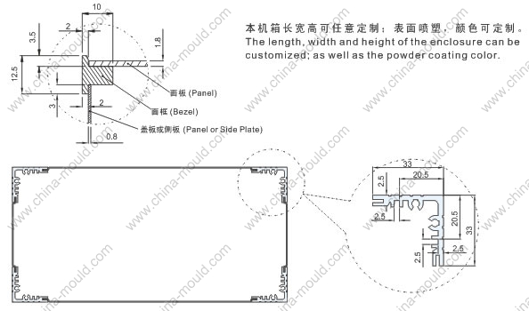 | 前后铝板可任意开孔,箱体长、宽、高尺寸均可任意定制。 |
