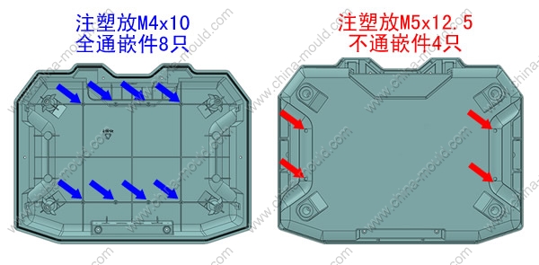 嵌件明细:注塑放M4x10全通嵌件8只 注塑放M5x12.5不通嵌件4只