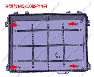 嵌件明细:注塑放M5X10嵌件4个