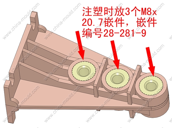 嵌件明细:注塑时放3个M8x20.7嵌件,嵌件编号28-281-9