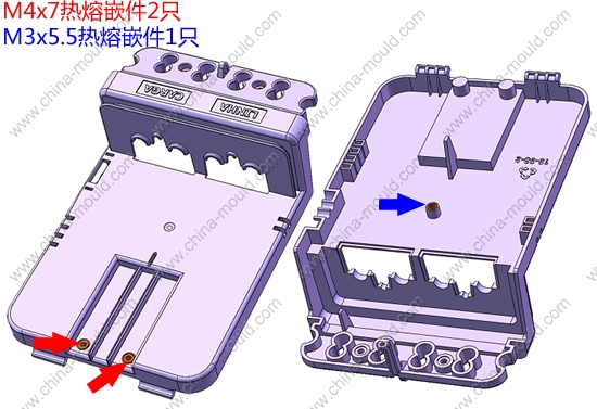 嵌件明细:M4x7热熔嵌件2只,M3x5.5热熔嵌件1只。