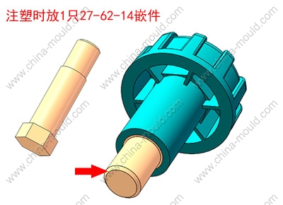 嵌件明细:注塑时放1只27-62-14镀镍嵌件
