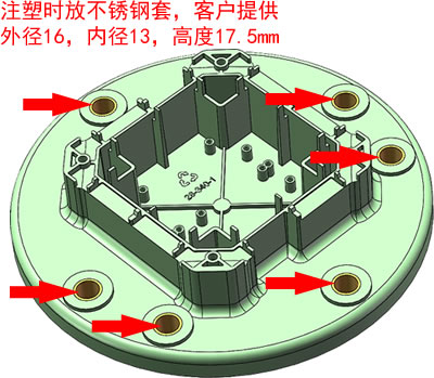 嵌件明细:注塑时放不锈钢套,客户提供。 外径16,内径13,高度17.5mm