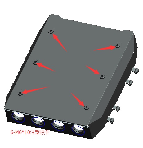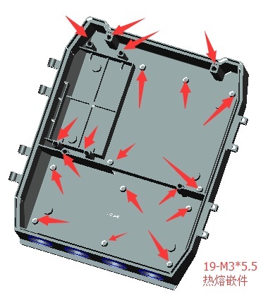 嵌件明细:19个只M3*5.5热熔嵌件,6只M6*10嵌件注塑时放
