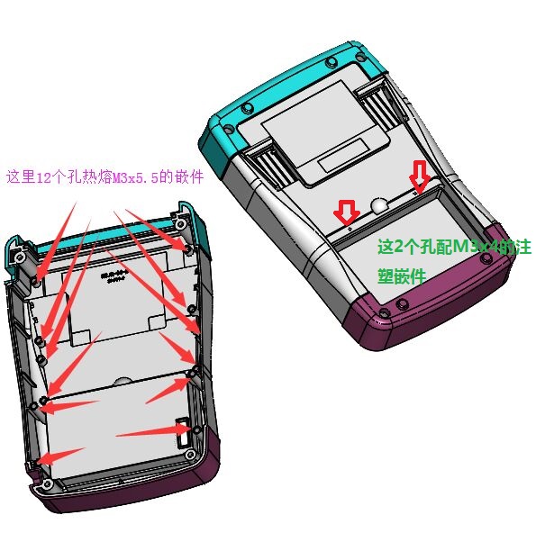 嵌件明细:配12个M3x5.5的热熔嵌件和2个M3x4的注塑嵌件
