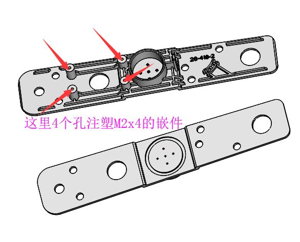 嵌件明细:配4个M2x4的注塑嵌件!