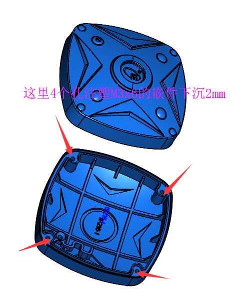 嵌件明细:配4个3x6的注塑嵌件下沉2mm