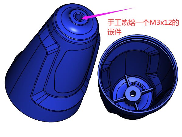 嵌件明细:手工热熔1个M3x12的嵌件。