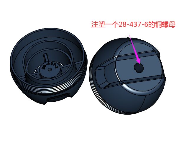 嵌件明细:注塑一个28-437-6的铜嵌件。