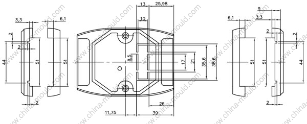 左边开孔51x9.4,右边开孔51x9.4,正面显示窗38.6x13为敲落孔,正面带圆孔。